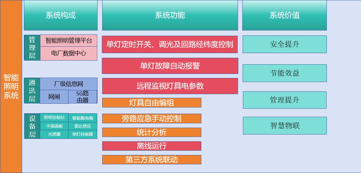 系统可靠性:网络中断时自动持续运行,单灯控制器可独立工作。
